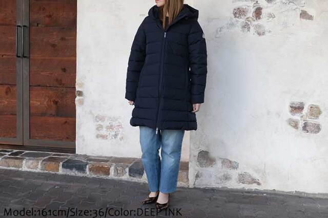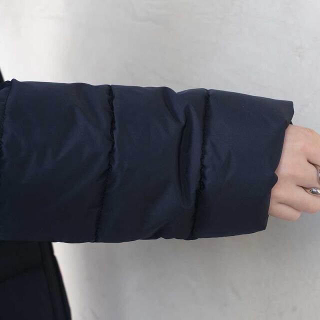 女性らしいAラインシルエットが美しいロングダウンコート。
