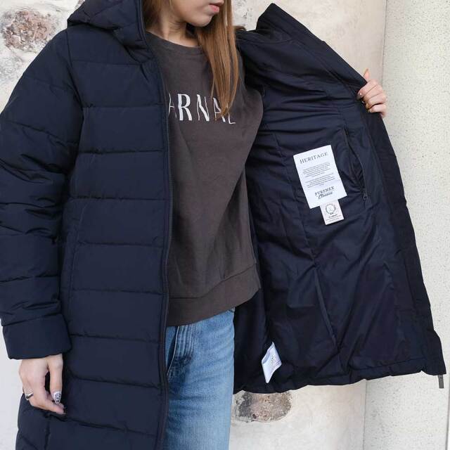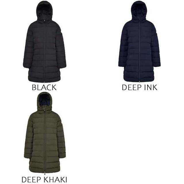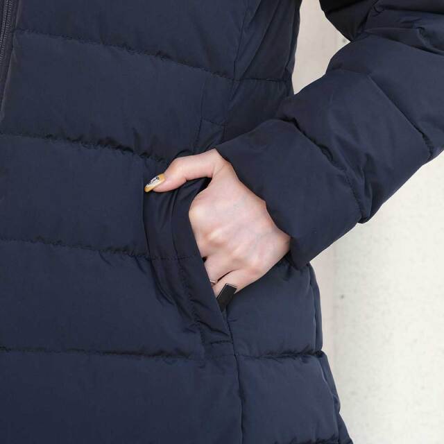| 素材 | 表地:ポリエステル(内側:ポリウレタンラミネート)100% 裏地:ポリエステル100% ダウン:ダウン90%、フェザー10% |