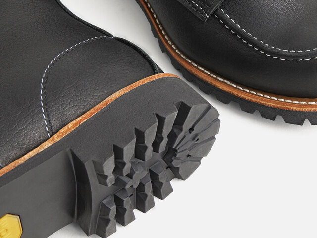 | オイルスリックはその名の通りオイル分を豊富に含んだレザーで、表面に施されているシボ加工によりさらにレザーの風合いを楽しめる一足となっています。 既存のラフネックにはビブラム・132ラグが採用されていましたが、今回のブラック・オイルスリック レザーからはビブラム・TC4プラスラグにアウトソールが変更されました。見た目はそのままに、高い防滑性に加え、柔らかなソールで快適さが向上し、足の動きもより自然に。 |