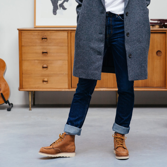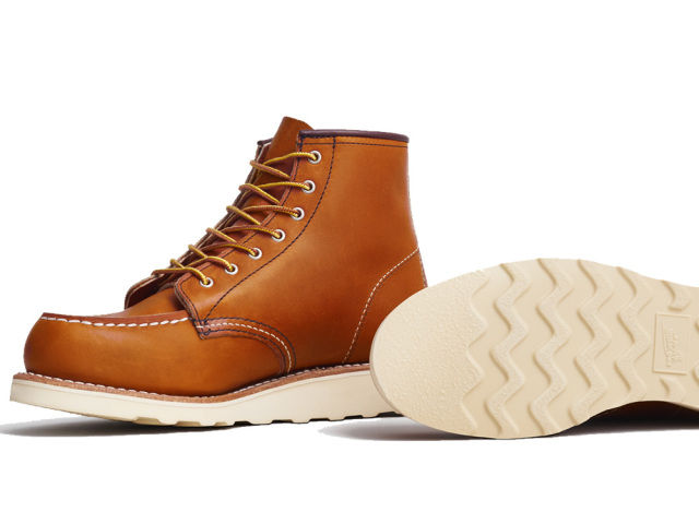 | レッドウィング社は1952年、底が平らでクッション性に富むトラクショントレッド・ソールをワーク・ハンティングを用途とする男性用のブーツに初めて導入し発売しました。8インチ丈のブーツ#877です。このブーツは発売と同時に大成功を収め、数年で様々なバリエーションが広がりました。6インチ丈の#875もそのひとつです。 |