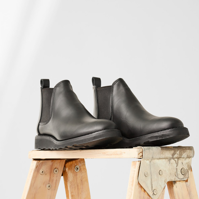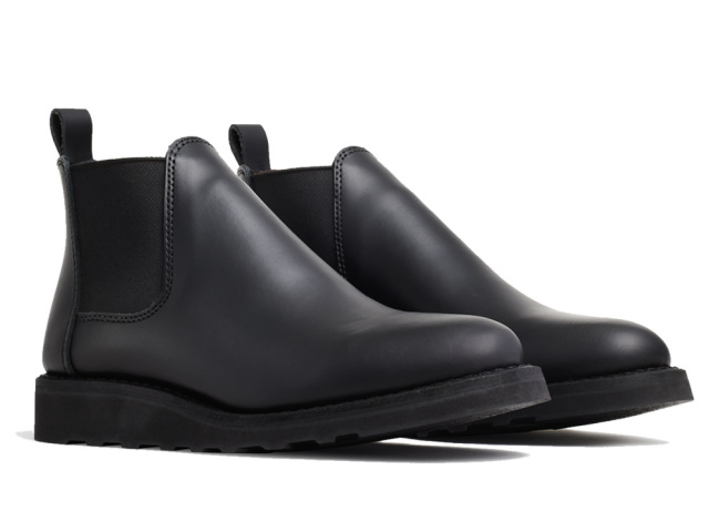 | 英国の乗馬用ブーツにルーツを持つこのサイドゴア・ブーツは19世紀にロンドンのチェルシー地区で流行したため「チェルシー」の名が付いたと言われています。フォーマルな靴によく用いられるデザインですが、その機能性の高さからワークブーツとしても古くから用いられてきました。靴の側面に縫い付けられたゴア(ゴム布)により着脱がスムーズになり、足首にしっかりフィットして泥などの侵入も防ぐ事ができます。 |