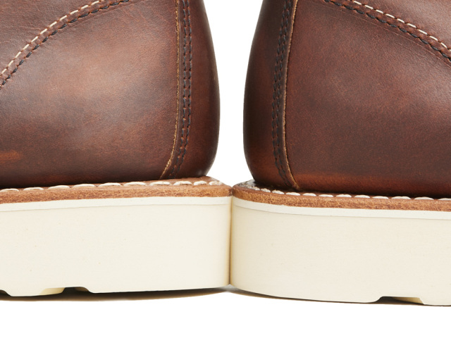 | #3428のレザーであるカッパー・ラフアンドタフは、銀面(革の表面)をわずかに擦って加工しオイルとワックスを加えたヌバック・レザーで、独特のムラ感と靴の仕上げ段階で加えられるシワ感を持っています。このレザーでつくられたブーツは最初から履き込まれたブーツのような味わいを持っています。そして、薄く馴染みやすいように改良されたウィメンズラインのレザーは、履いたその日から快適な履き心地を実感していただけます。 |