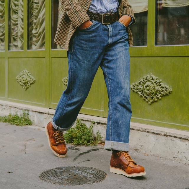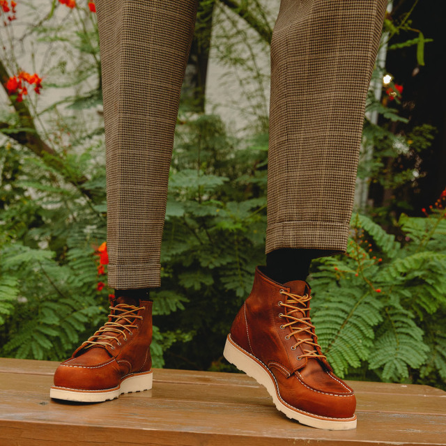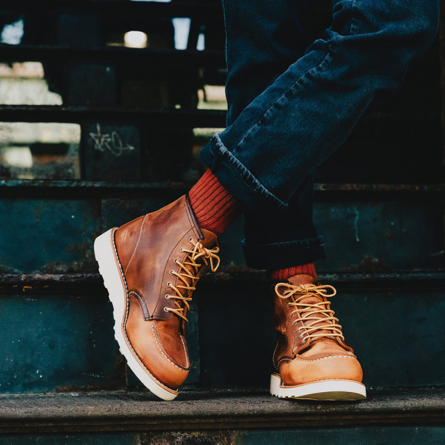 | モカシンタイプのつま先(モックトゥ)などが持つ履きやすさ。どのような場所でも歩きやすく長時間履いても疲れにくいトラクショントレッド・ソール。さらに良質なレザーや堅牢なつくりがもたらす機能性と耐久性で、ワーカー達に絶大な支持を得てアメリカを代表するワークブーツとなり、その後70年近く経った現在でもレッドウィングを代表するブーツとして愛され続けています。 |