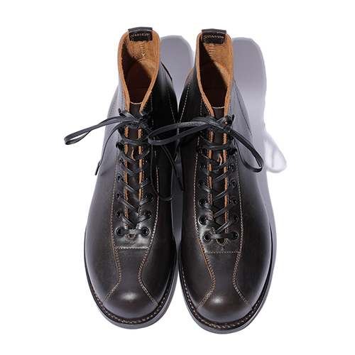 The 2 Monkeys の RANDONNEE (ランドネ) は、当時のデザインをベースに、マンソンラスト のつま先を修正したオリジナルの木型を使い、約3mm厚の革でつくったブーツです。