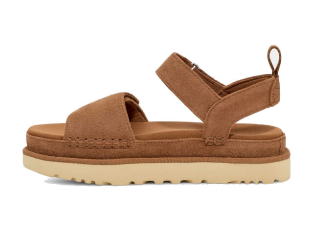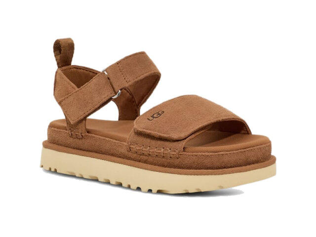 | UGGオリジナルフォームのフットベッドと再生可能資源であるサトウキビで作られたアウトソールが終日持続するクッション性で快適にサポートします。 2本の調節可能なストラップでフィット感を調整できます。 |