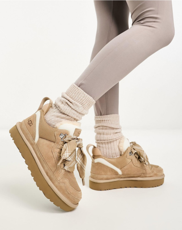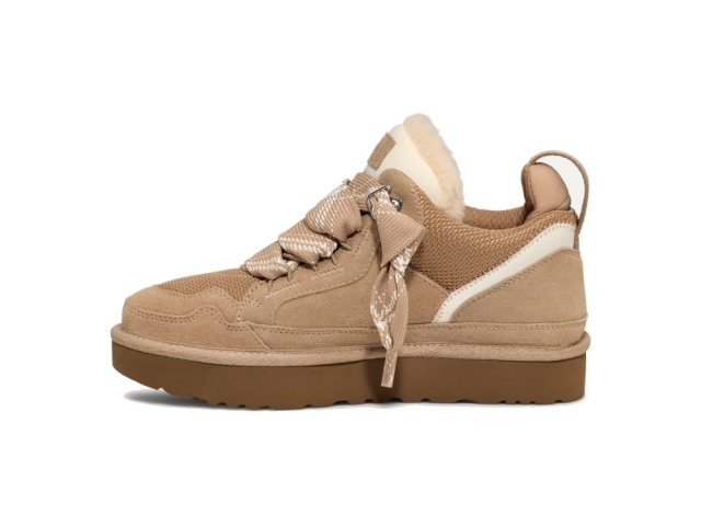 | 素材 | ・再生弾道キャンバスメッシュ、スエードのアッパー ・ウェビングのヒールストラップ、UGGのロゴパッチ、オーバーサイズのパッド入りタン ・UNIFI再生ポリエステル繊維100%、2色のフラットレース ・ポリエステルメッシュライニング:コーヒーチャコールを使用したポリエステル55%、ポリエステル45%、10㎜のUGGplushライニング(アップサイクルウール60%、リヨセル40%) ・インソール:10㎜のUGGplush(アップサイクルウール60%、TENCELリヨセル40%) ・フットベッド:EVA ・アウトソール:サトウキビ由来のEVA素材 |