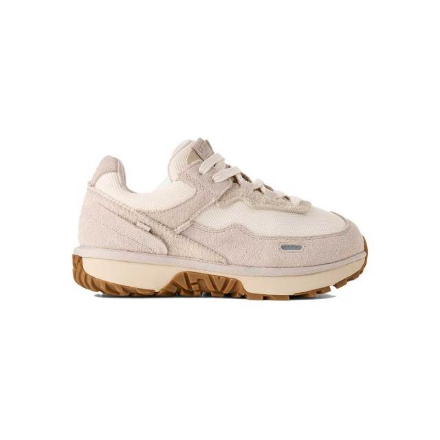 | 素材 | ・アッパー:再生ポリエステル繊維100%を使用したテキスタイル、スエード、クラシックブーツからインスピレーションを得たTPUヒールスタビライザー付き ・パーフォレーション加工を施したタン、リフレクティブ素材のディテール、ツインシームのディテール ・再生ポリエステルレース ・ライニング:再生ポリエステル90%、スパンデックス10%を使用したテキスタイル、テキスタイル(再生ポリエステル45%、ポリエステル55%) ・ソックライナー:再生ポリエステル100%を使用したテキスタイル ・フットベッド:モールドフォーム、バイオベースの成分を50%以上含む注入PU ・ミッドソール:Sugarcane EVA ・アウトソール:ラバー、柔軟性を高め、軽い履き心地をもたらすフレックスグルーブを採用 ・エンボス加工のUGGロゴ |