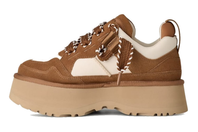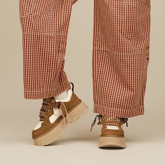 スエード、ナイロン、再生テキスタイルのアッパーを採用し、ツインシームのディテールや約5cmの厚底プラットフォーム、クッション性に優れたEVAのフットベッドがUGGのルック&フィールを表現し、クラシックスニーカーの要素をアレンジし進化させた全く新しいデザインでありながらも、UGGらしいスタイルに仕上げています。 |