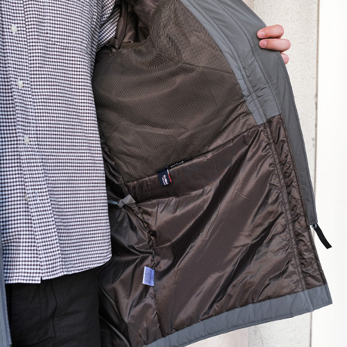 米国製のこの特別な中綿は「Berry Compliant」(米国で国防製品の素材調達において、国産品使用を義務付ける法律に準拠)を満たし、かつ収納力に優れ、耐久性があり、AquaBanの機能によって濡れたり多湿な環境でも保温性を発揮する。