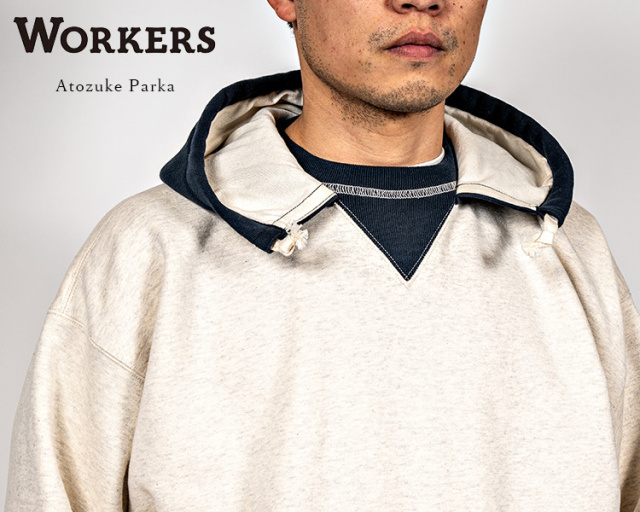 「後付け」と言いながらオリジナルはフードを襟に流し込んで途中でつけているものもありますが、WORKERS の後付けは本当に「後付け」。