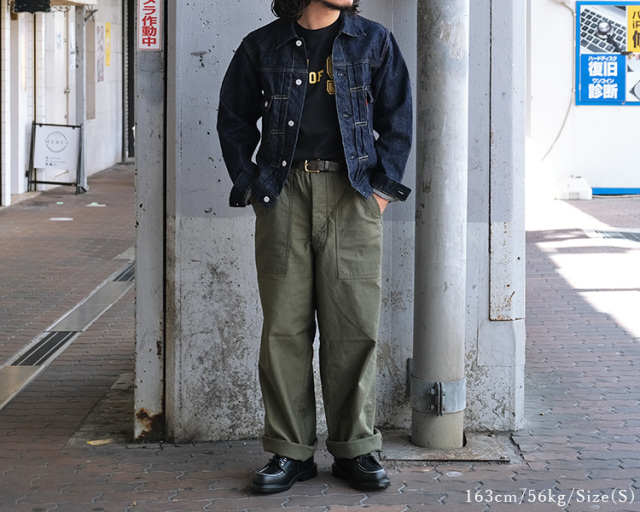 | 素材 | コットン100% (10オンス) バット染料バックサテン 附属:尿素ボタン 縫製:ポリエステルスパン糸 |