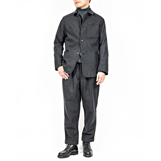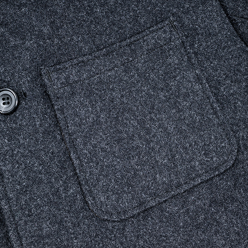 | 素材 | 表地:9オンス、ウール90%/ナイロン10%、一宮産フランネル 裏地:コットンツイル/コットン100% 袖裏:ポリエステル100%ツイル |