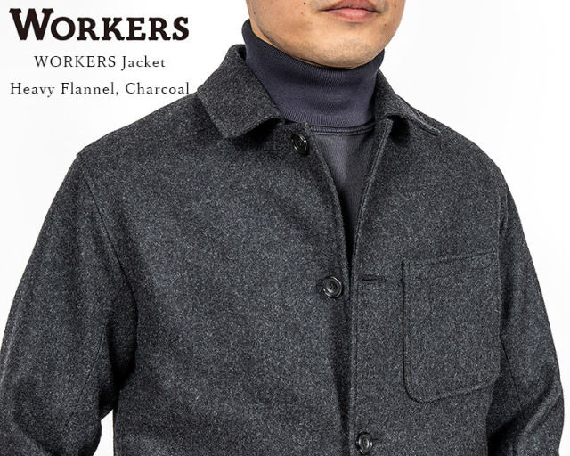 真冬、寒くて 襟を立てて着ることしばしば。今度は立てた襟を無理やりシャツのように開いてみると・・・テーラードでもない、カバー オールでもない。なんだかよくわからないけれど魅力的なジャケット。これを形にしたのがWORKERS Jacket。